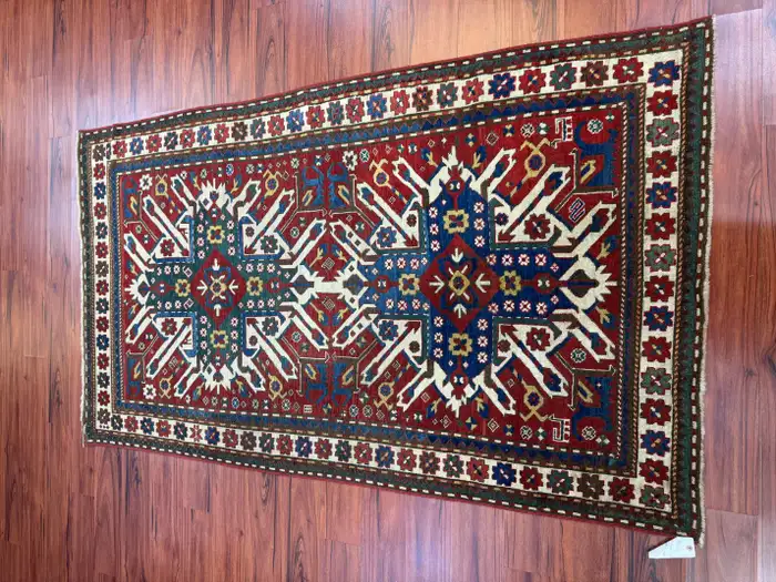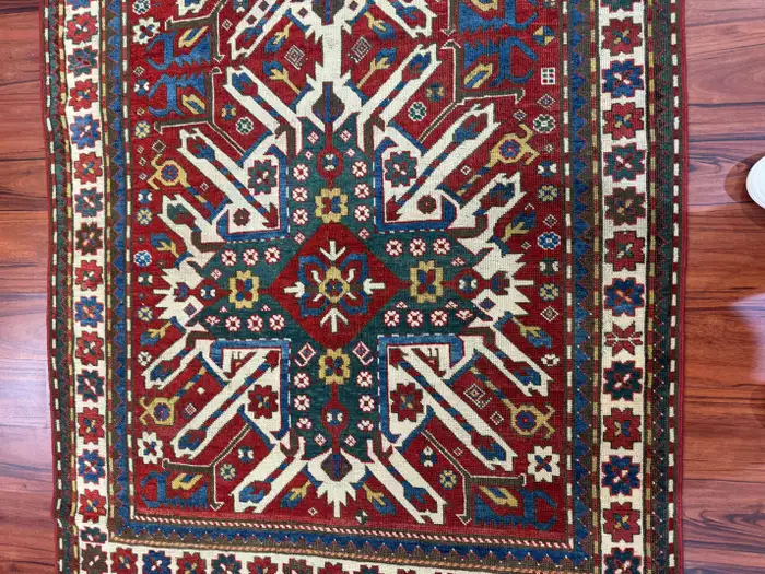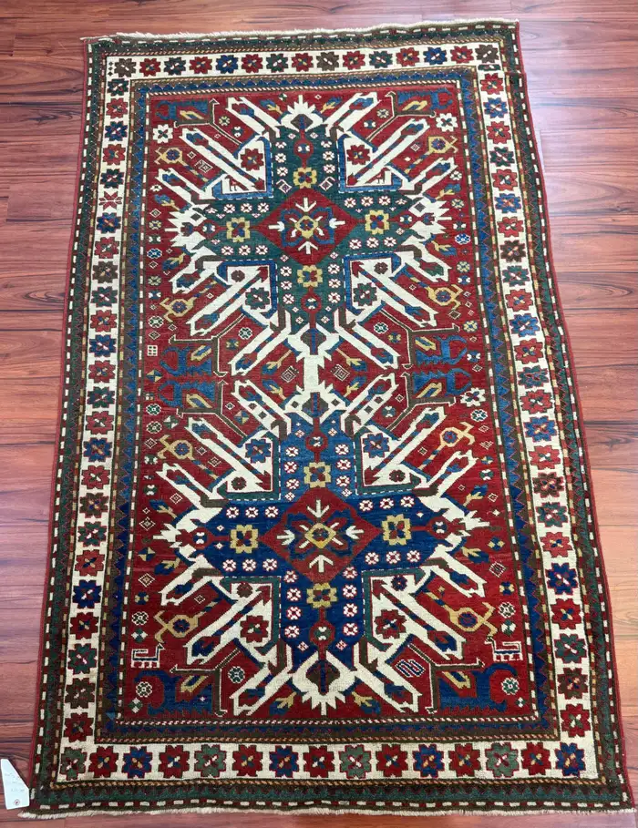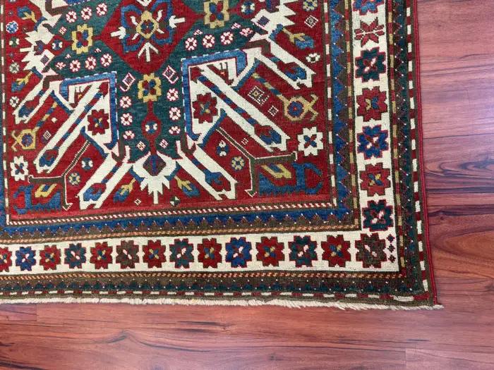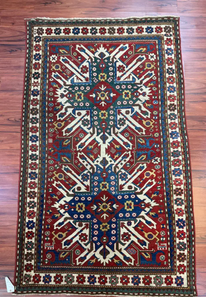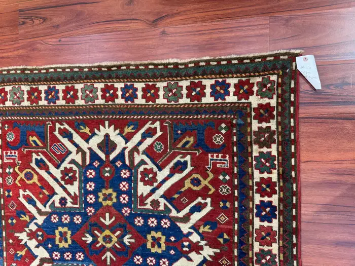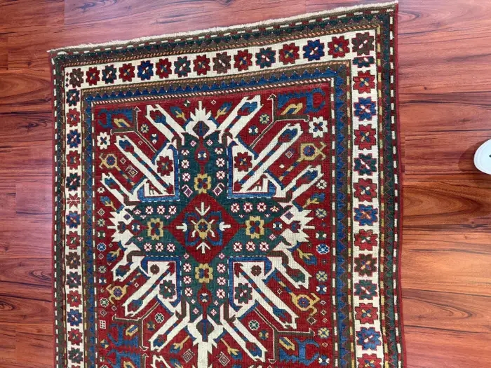 Stunning antique Caucasian Kazak eagle rug, measuring 4’5″ in width by 7’5″ in length. This remarkable piece is in excellent condition, considering its rich history, and features the iconic eagle design that is characteristic of Kazak rugs. The bold colors and intricate geometric patterns add a unique and timeless touch to any space. Its excellent condition and historical significance make it a true collector’s item. Feel free to message me with any questions regarding this listing or any other items posted on my page!
